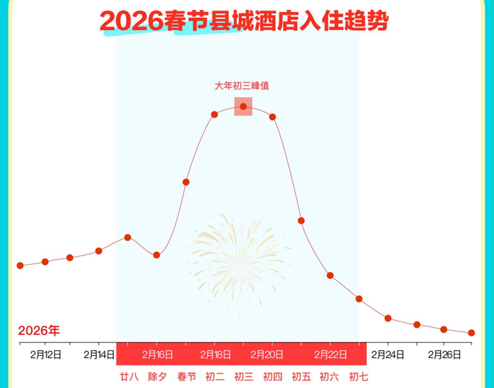 这种现象并非个例。去哪儿数据显示,今年春节期间,旅客入住了全国千余个县城酒店,非旅游景区类县城酒店入住增幅超过60%,多个劳务输出大县预订量翻倍增长。安徽临泉县酒店预订量同比增长1.4倍,湖南汉寿县、广西灵山县均增长超过1.3倍。
