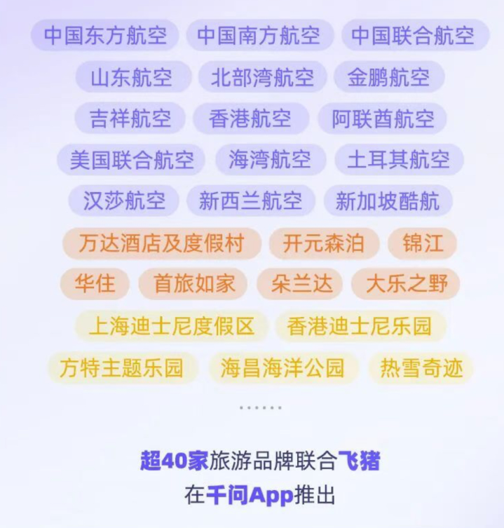 供给侧的接入也迅速铺开。飞猪方面披露,平台已联合全球超过40家旅行品牌接入AI能力,覆盖国内外航空公司、头部酒店集团及主题乐园。