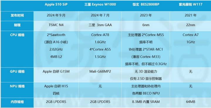 不难发现,全智能手表和轻智能手表在芯片的制程、架构、频率、GPU规格、算力水平,乃至内存大小等方面,实在是有着过于巨大的差异。
