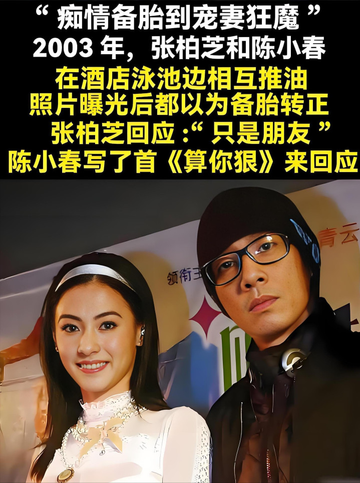 陈小春被多次拍到跟张柏芝亲密互动(如泰国推油照片),但张柏芝始终强调两人仅为朋友。陈小春曾长期单恋她,甚至创作《没那种命》《算你狠》等歌曲表达情愫。